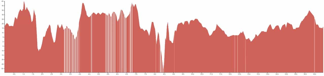 Using both graphs, alongside the grading and terrain information provided, should however give you a good idea of how flat, bumpy or steep the climbing on your particular tour is going to be.