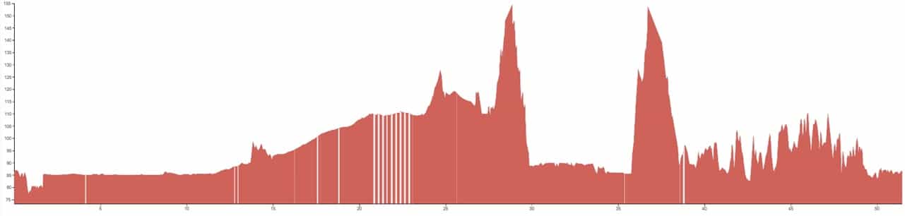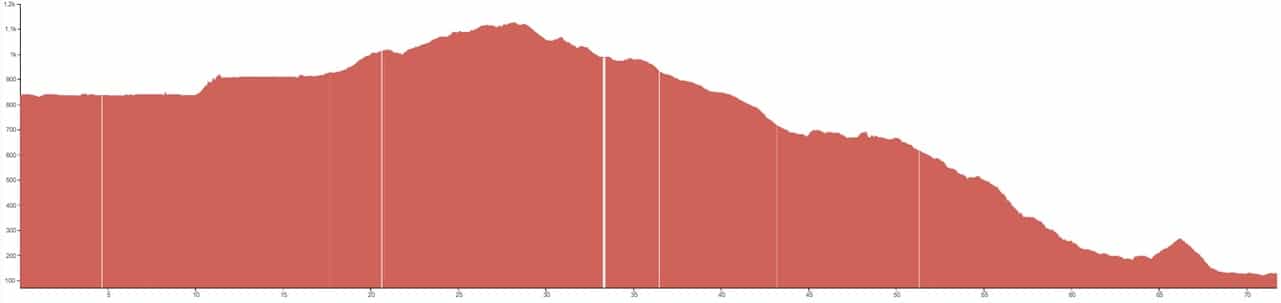 White vertical lines indicate unpaved sections or slightly rougher terrain.