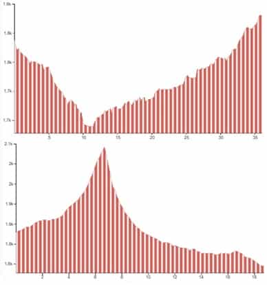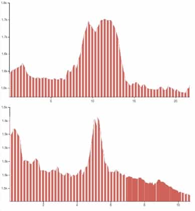 Please check the scales on both graphs, and both axes as they both may differ from day to day.