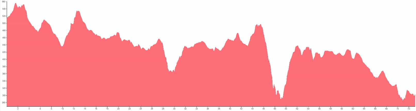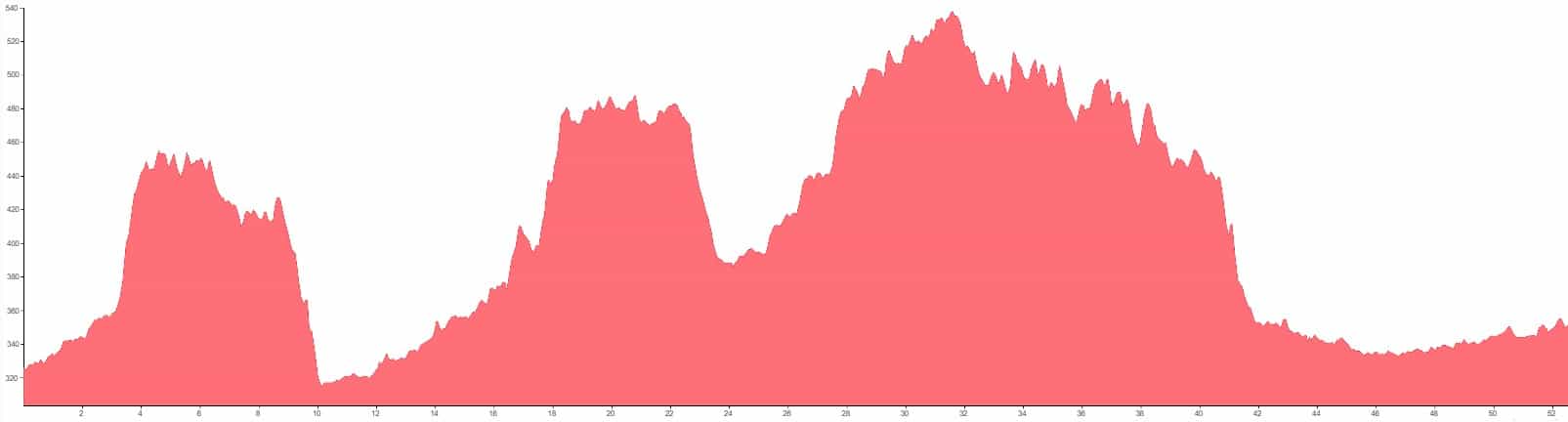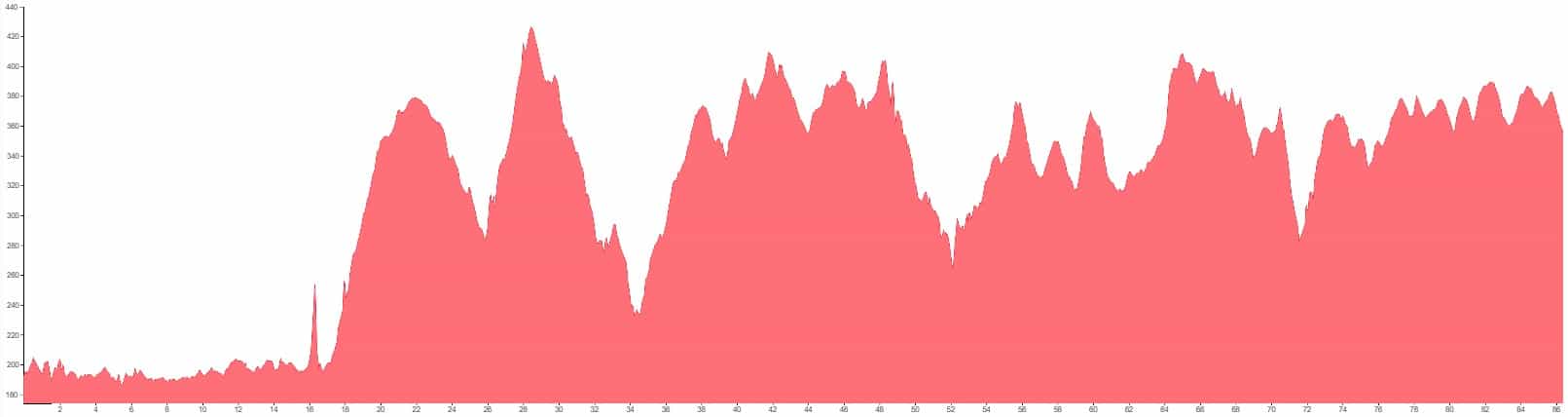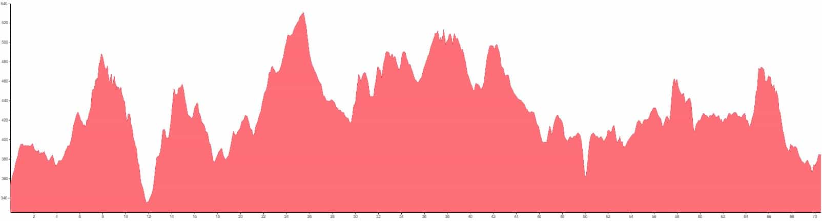 Using both graphs, alongside the grading and terrain information provided, should however give you a good idea of how flat, bumpy or steep the climbing on your particular tour is going to be.