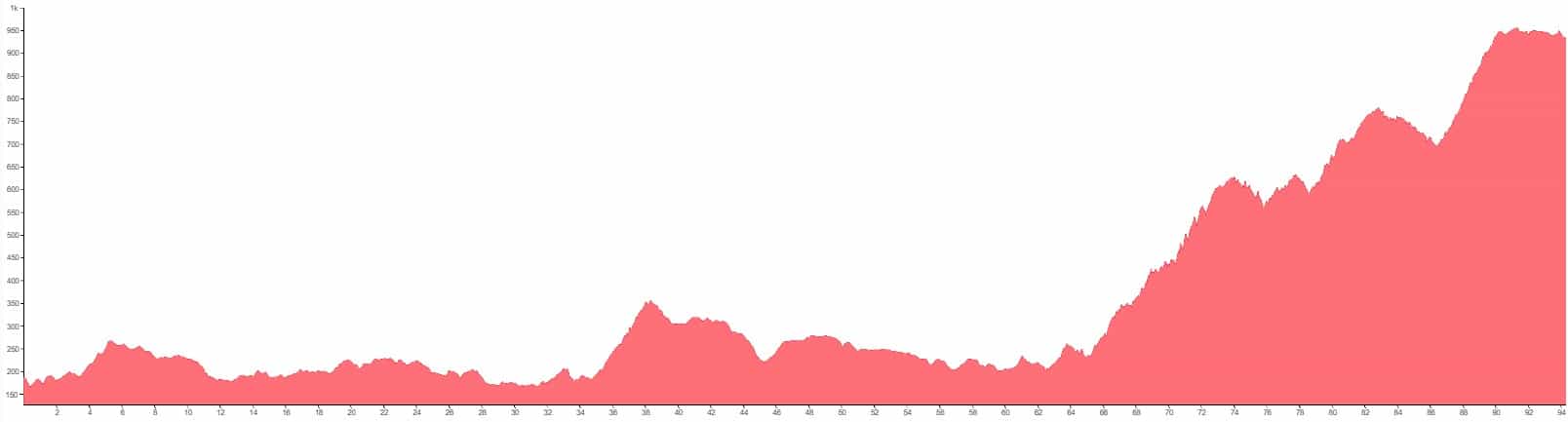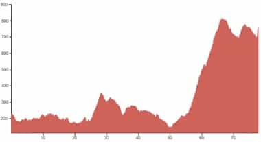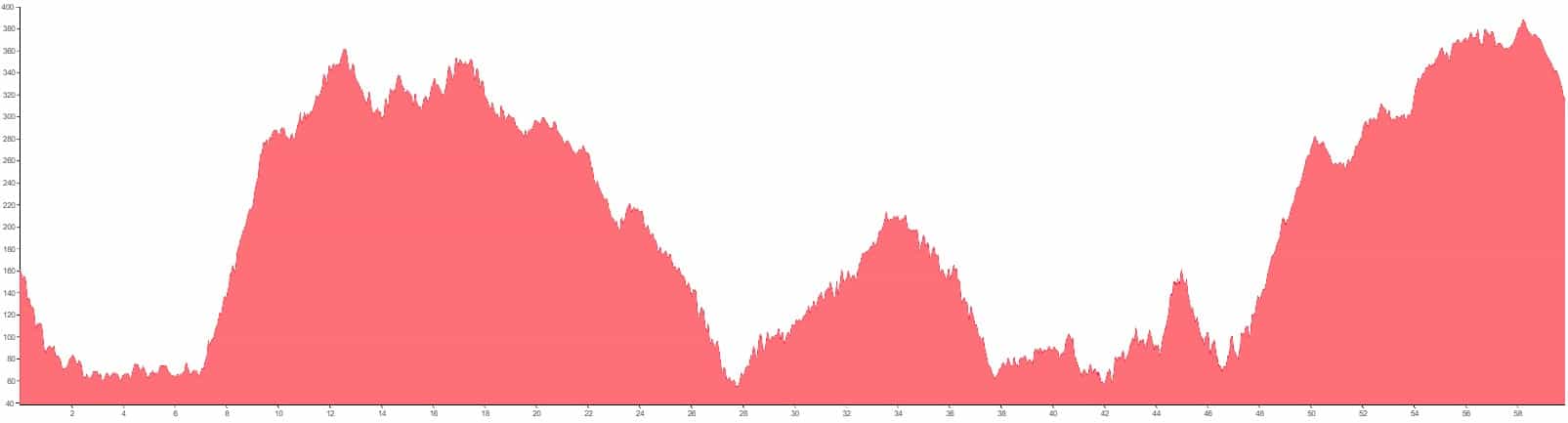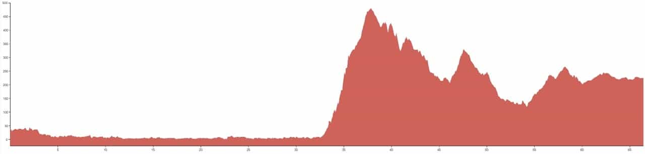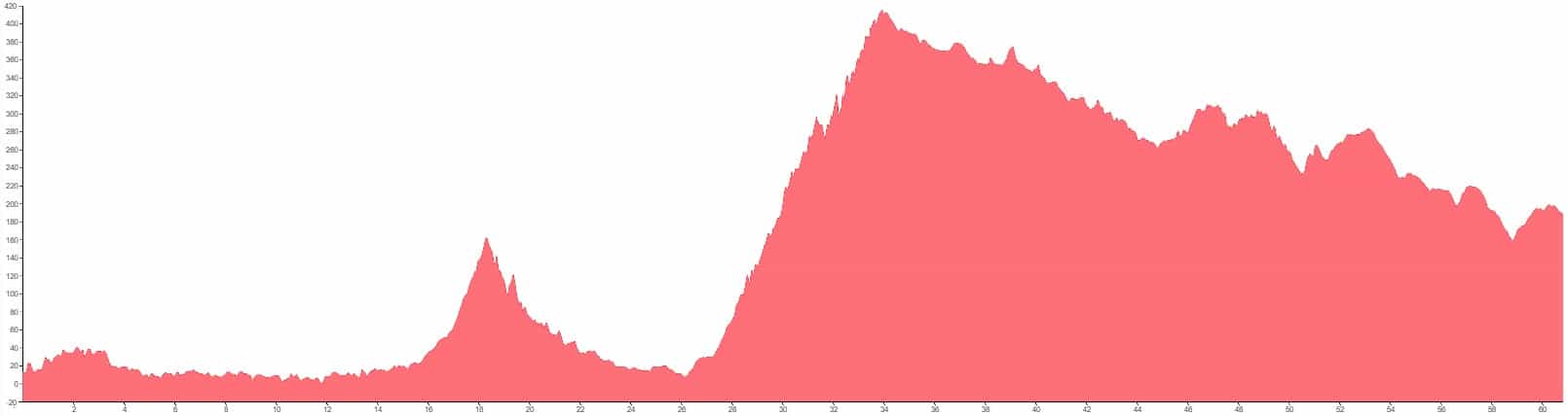 Using both graphs, alongside the grading and terrain information provided, should however give you a good idea of how flat, bumpy or steep the climbing on your particular tour is going to be.