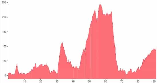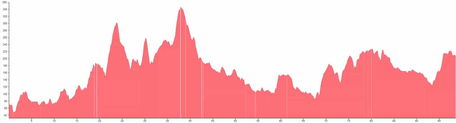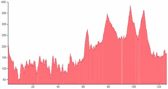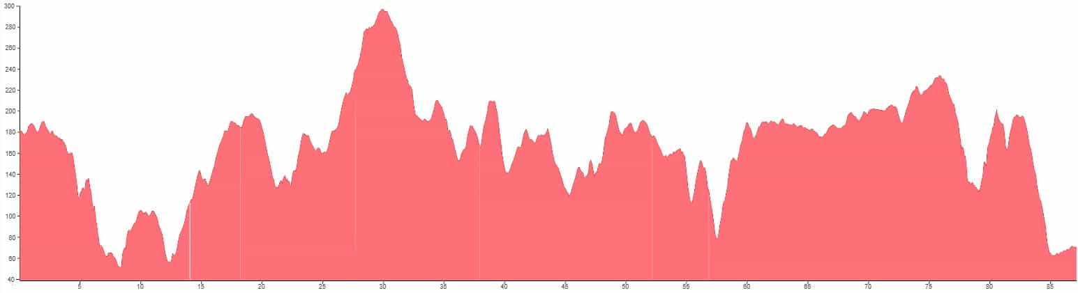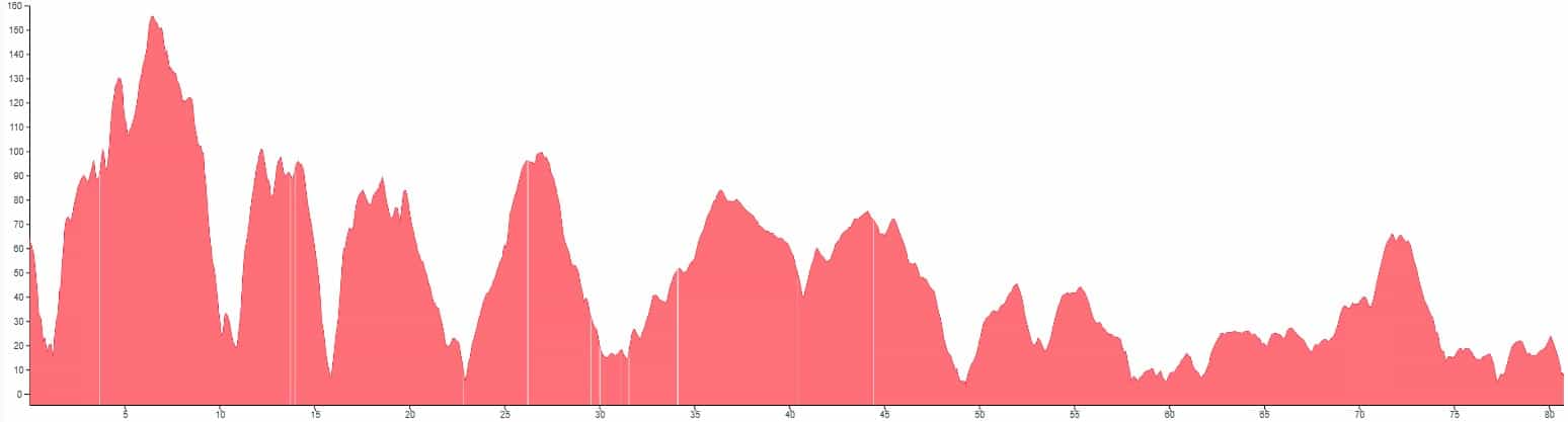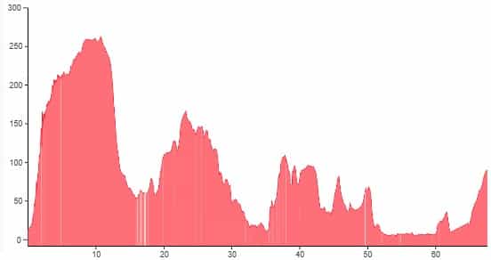 Using both graphs, alongside the grading and terrain information provided, should however give you a good idea of how flat, bumpy or steep the climbing on your particular tour is going to be.