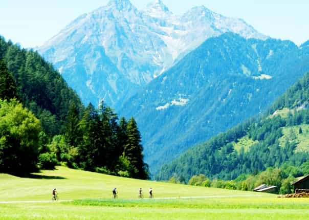 At Martina we’ll cross the Swiss border (don’t forget your passport today!), which is followed by another challenging climb. Once at the top however, we can just sit back, enjoy the mountain pastures before rolling down to Nauders (1400m/4593ft). Situated in the border triangle of Austria, Switzerland and Italy and surrounded by the Weisskugel it’s a lovely setting.