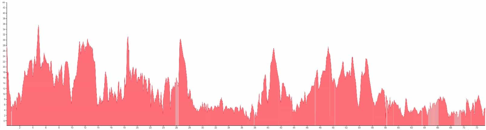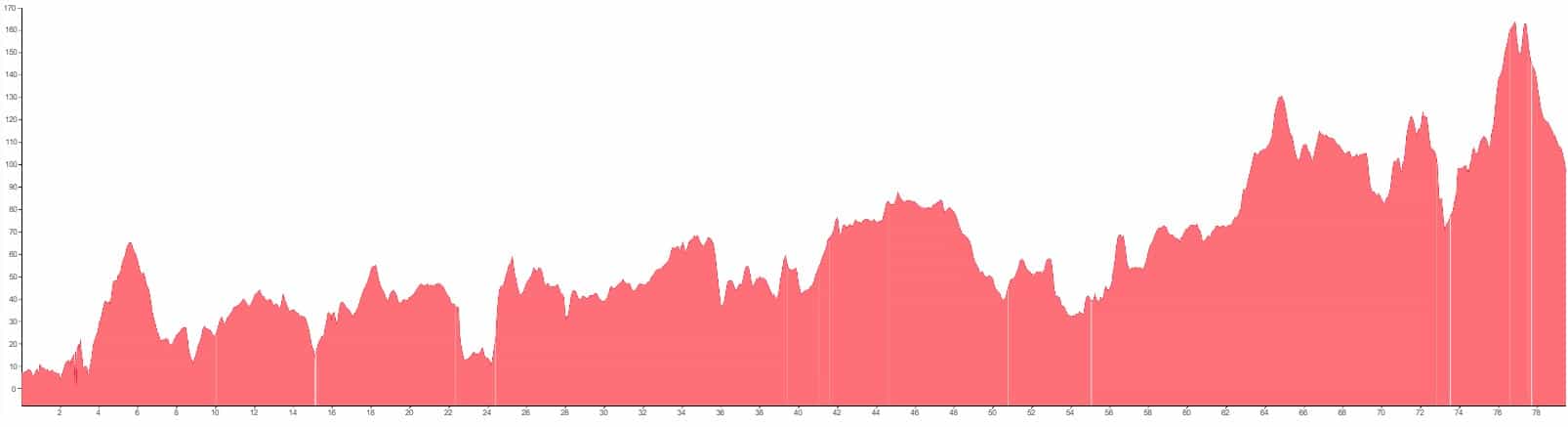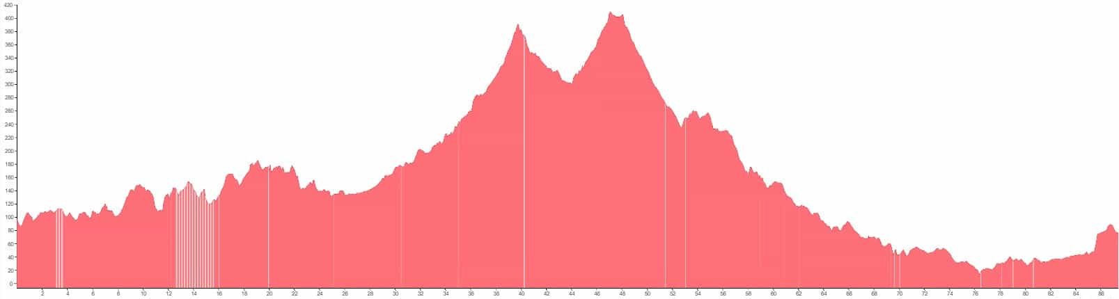 Using both graphs, alongside the grading and terrain information provided, should however give you a good idea of how flat, bumpy or steep the climbing on your particular tour is going to be.