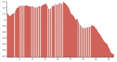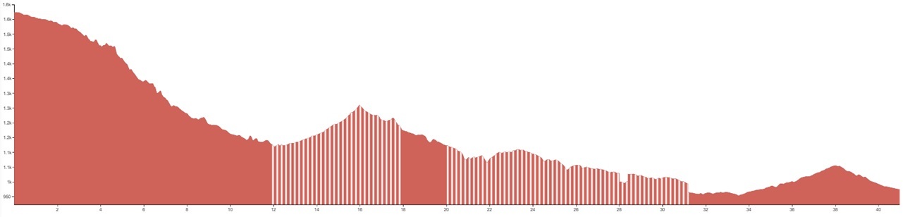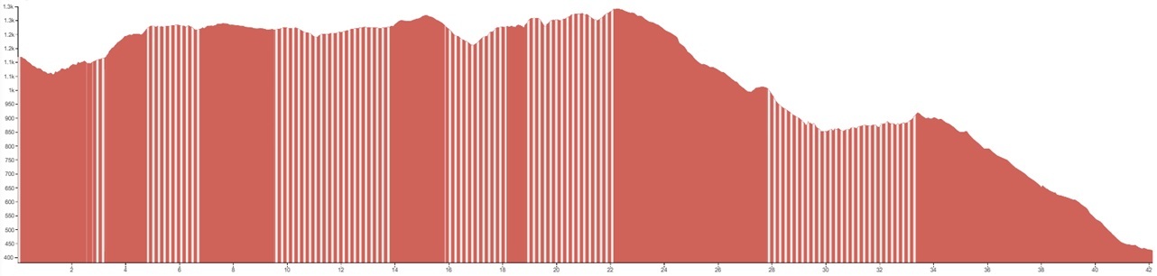 White vertical lines indicate unpaved sections or slightly rougher terrain.