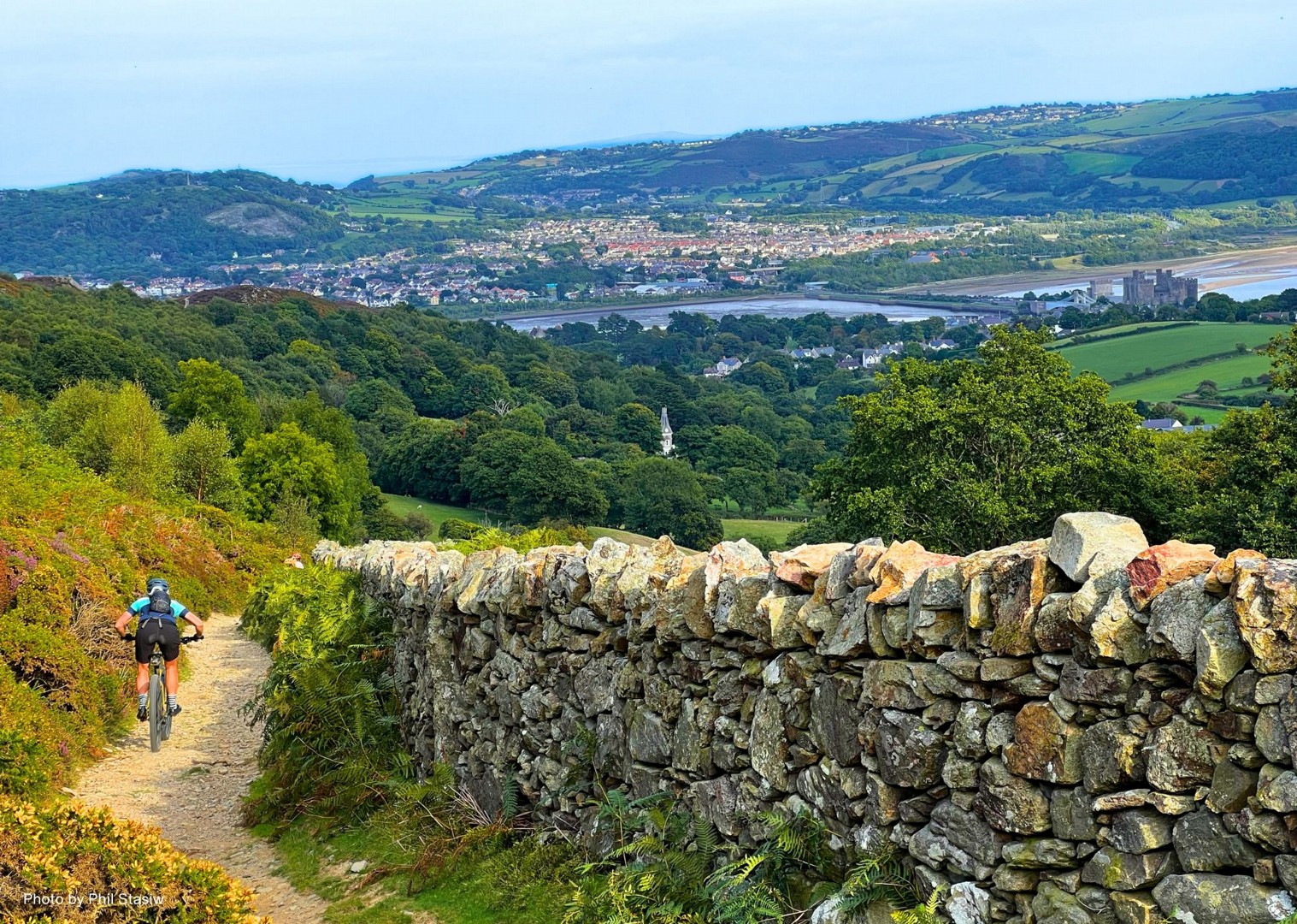 Leaving Bethesda, you’ll notice a dramatic change in landscape, as dry-stone walls border the twisting country lanes, and mountain views give way to coastal views of the Menai Strait towards Anglesey. We’ll stop for lunch around the village of Abergwyngregyn, just a stone’s throw from the sea. However, the journey’s not over just yet as we turn inland once more, skirting Llanfairfechan and up onto lesser-explored trails. With panoramic views over the coast and back towards Eryri, a tough climb up a bridleway soon leads us on a rollercoaster romp over moorland grazed by sheep and ponies along criss-crossing trails. Our final stretch hugs the shoulder of the imposing Conwy Mountain, before a grin-inducing descent takes us down into the historic walled town of Conwy and our finish point at the medieval castle. In the evening, we’ll gather for a final meal and a drink or two as we’ll share stories, raise a glass, and toast the completion of this epic 240 km (150 mile) mountain biking adventure across North Wales.