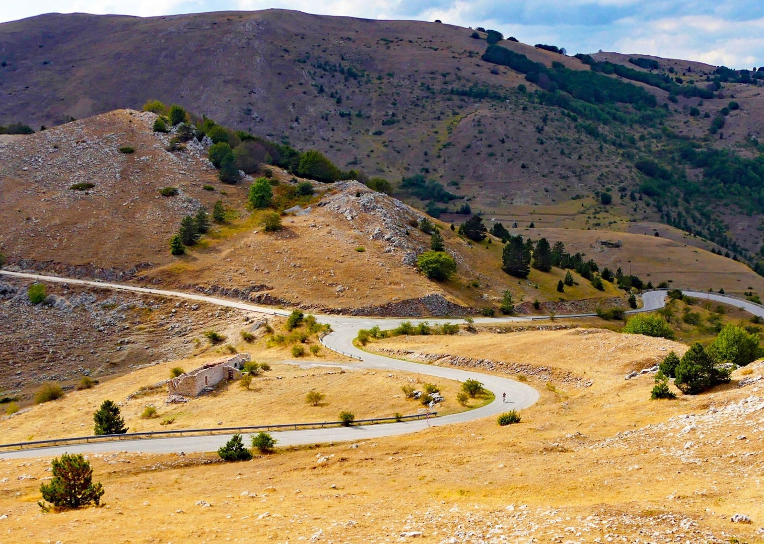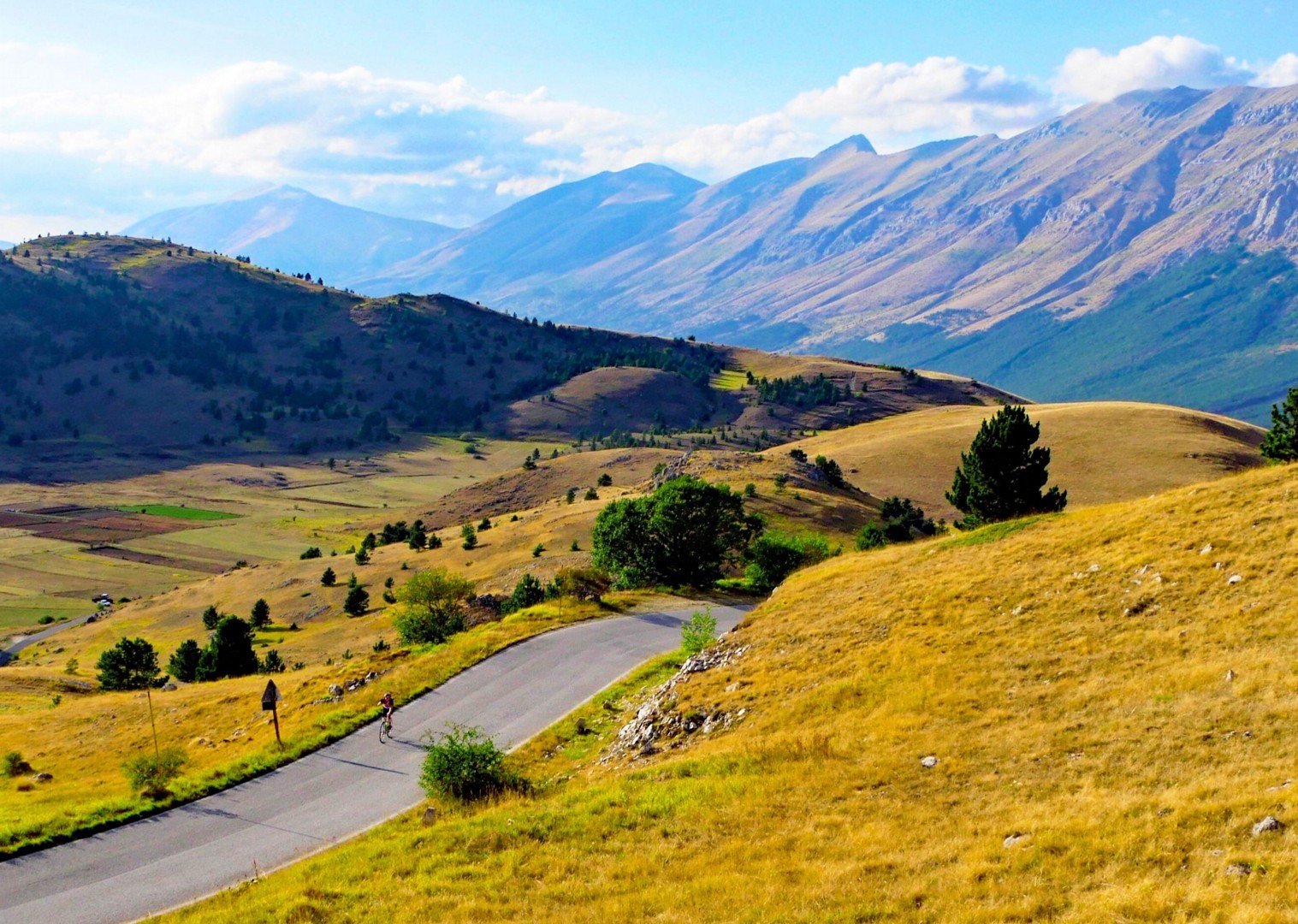 From Campo Imperatore we reach the highest point of our journey at over 1,700m, all the while being surrounded by amazing panoramic views on the surrounding mountains. A swift descent into the territory of the town of L‘Aquila takes us to the little villages of Arischia and Pizzoli from where we reach our destination at Cagnano Amiterno.