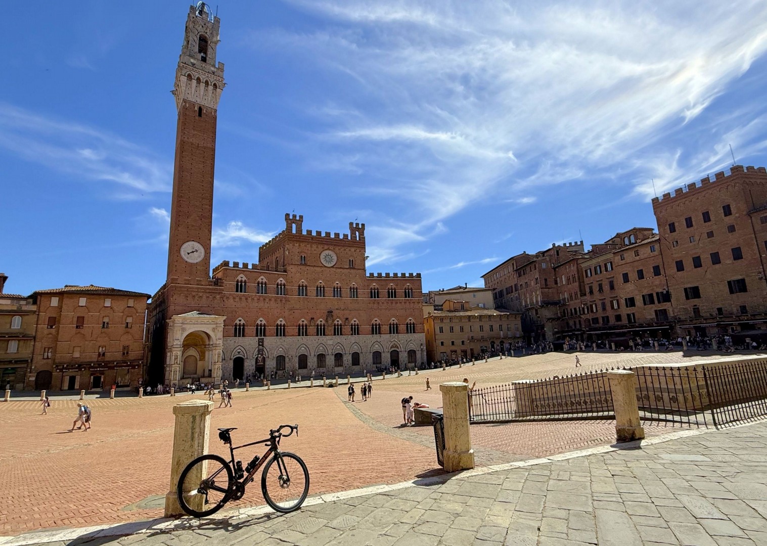 Do take your time to have a coffee or gelato in the old town of Asciano and don’t forget to stop often and drink in the sights along this rollercoaster road of marvellous views. After passing Taverna d‘Arbia we cycle into Siena well in time to freshen up and go for a walk in the famous Tuscan town admiring its many sights, first amongst which is the shell-shaped Piazza del Campo.