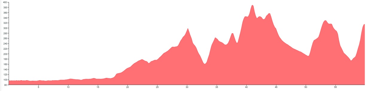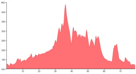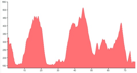 Using both graphs, alongside the grading and terrain information provided, should however give you a good idea of how flat, bumpy or steep the climbing on your particular tour is going to be.