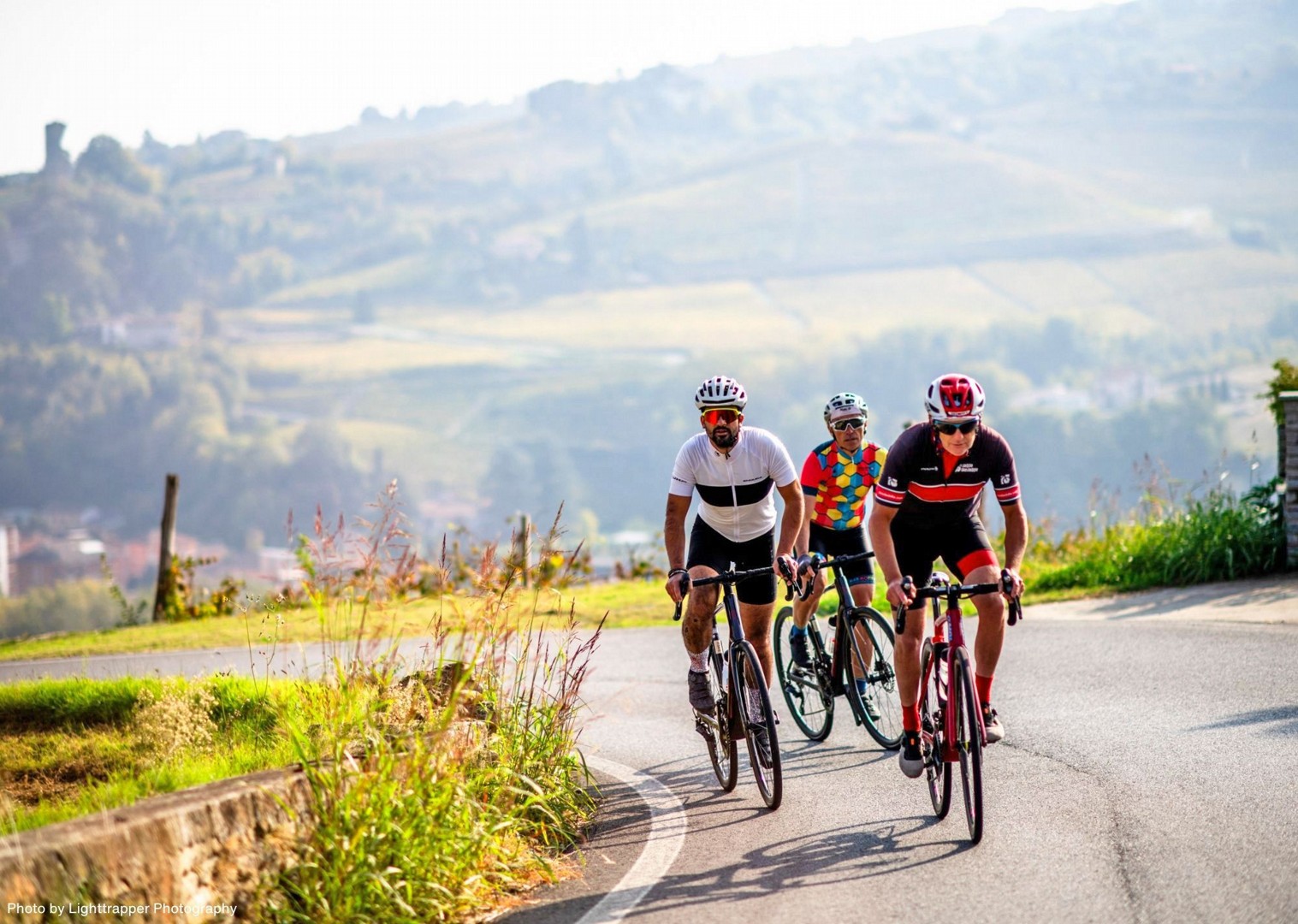 - Cycling through rolling hills terraced with vineyards and quaint medieval villages