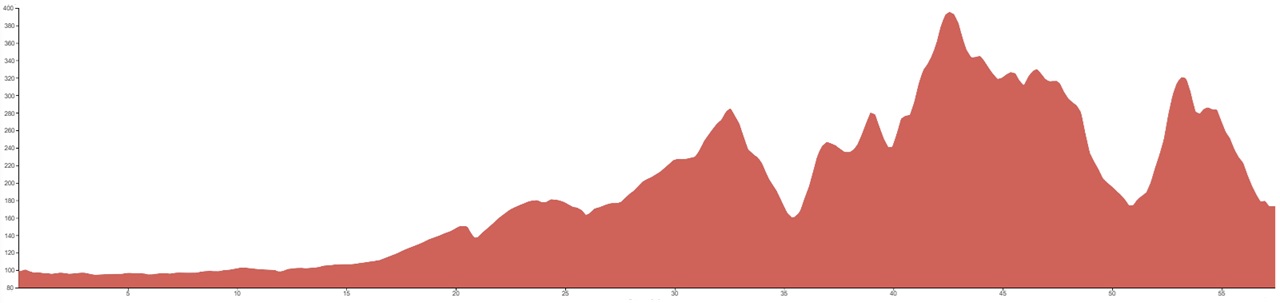 Using both graphs, alongside the grading and terrain information provided, should however give you a good idea of how flat, bumpy or steep the climbing on your particular tour is going to be.