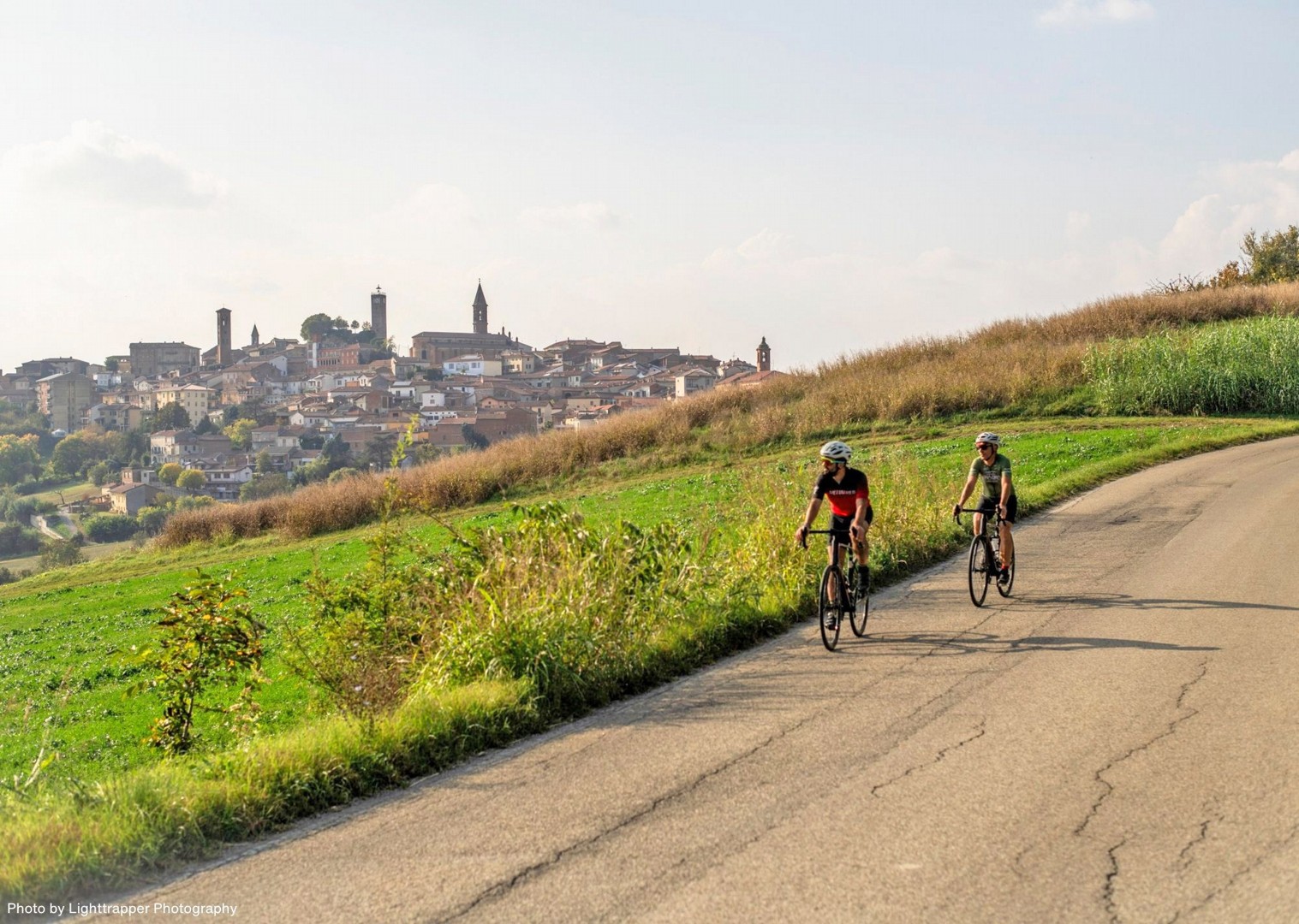 - Cycling through rolling hills terraced with vineyards and quaint medieval villages