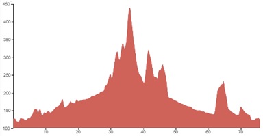 Using both graphs, alongside the grading and terrain information provided, should however give you a good idea of how flat, bumpy or steep the climbing on your particular tour is going to be.