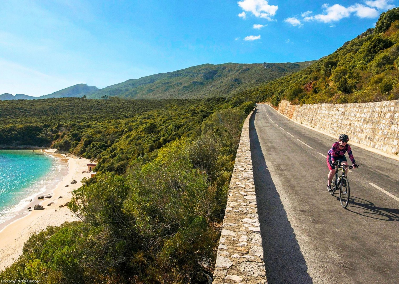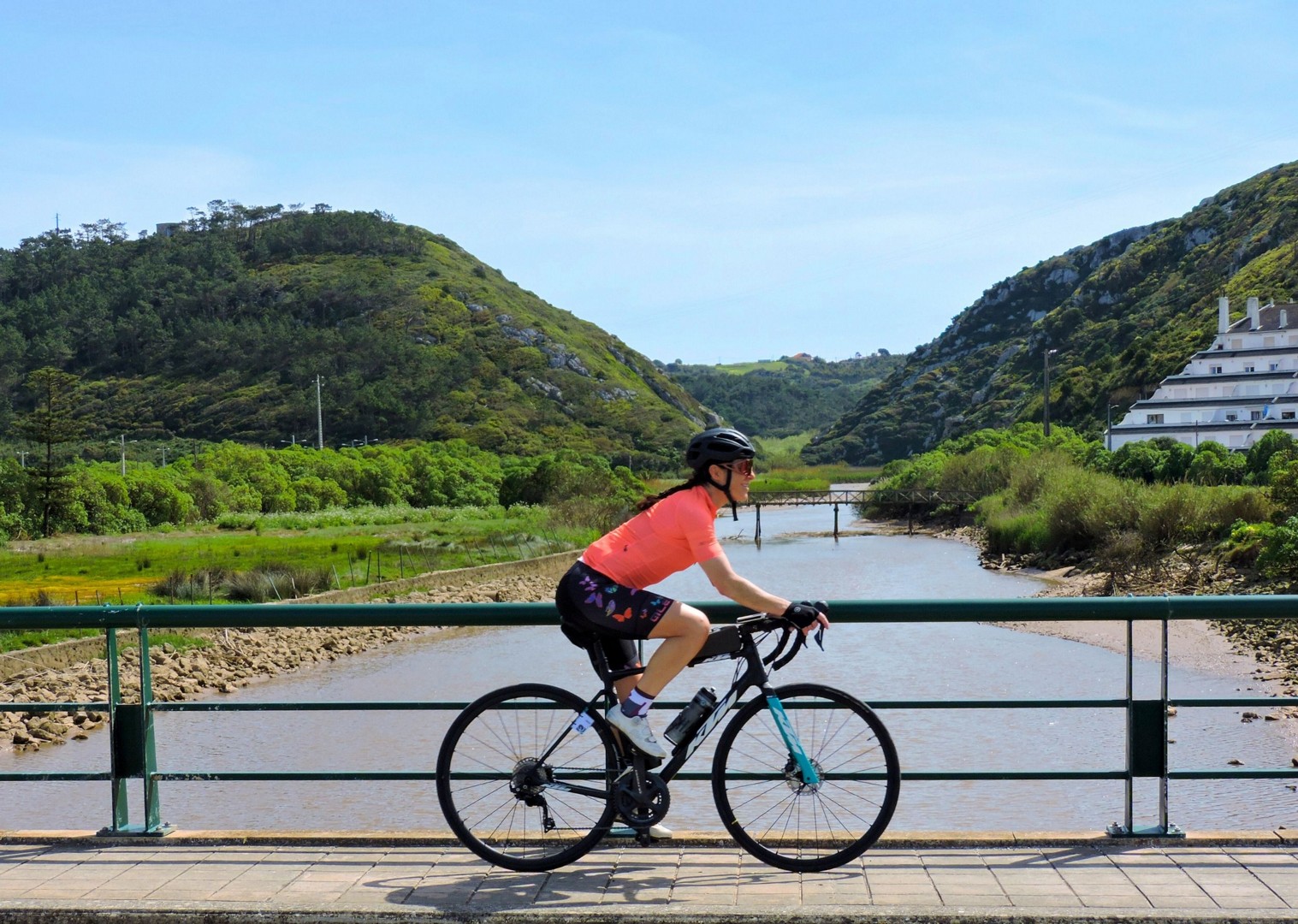 A fast, thrilling descent drops us toward the ocean, where dense forest and salty air give the ride a tropical feel. Setúbal waits at the foot of the mountains, and from here we hop on the ferry to Troia (25 minutes), often accompanied by dolphins.