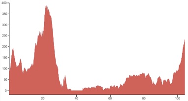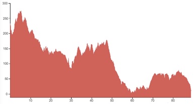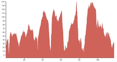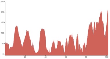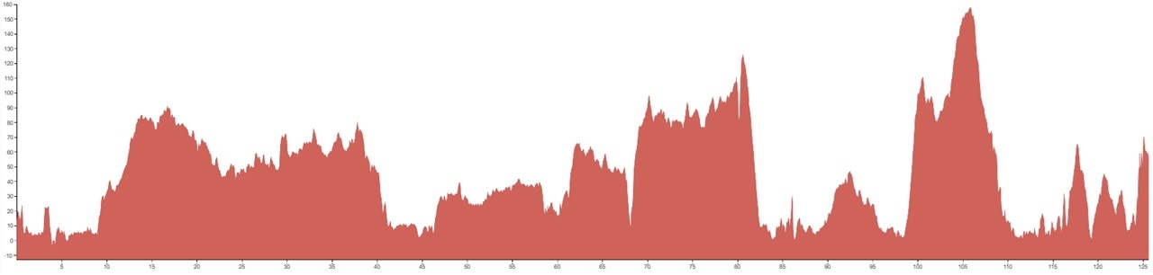 Using both graphs, alongside the grading and terrain information provided, should however give you a good idea of how flat, bumpy or steep the climbing on your particular tour is going to be.