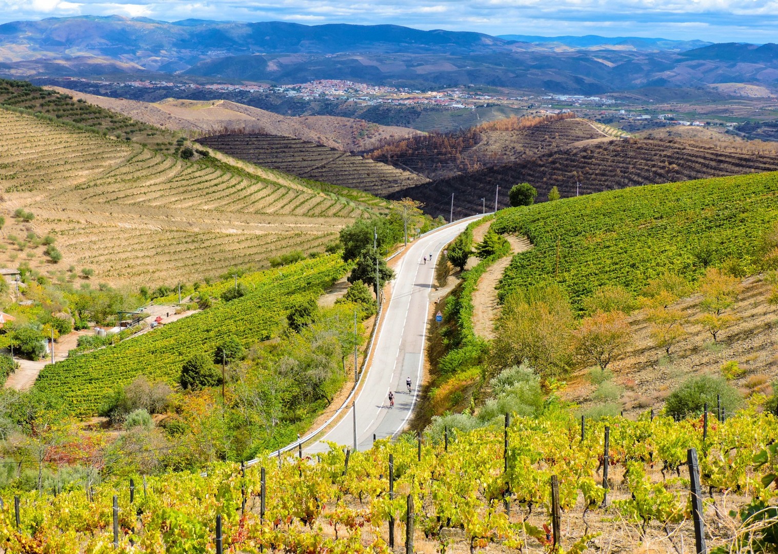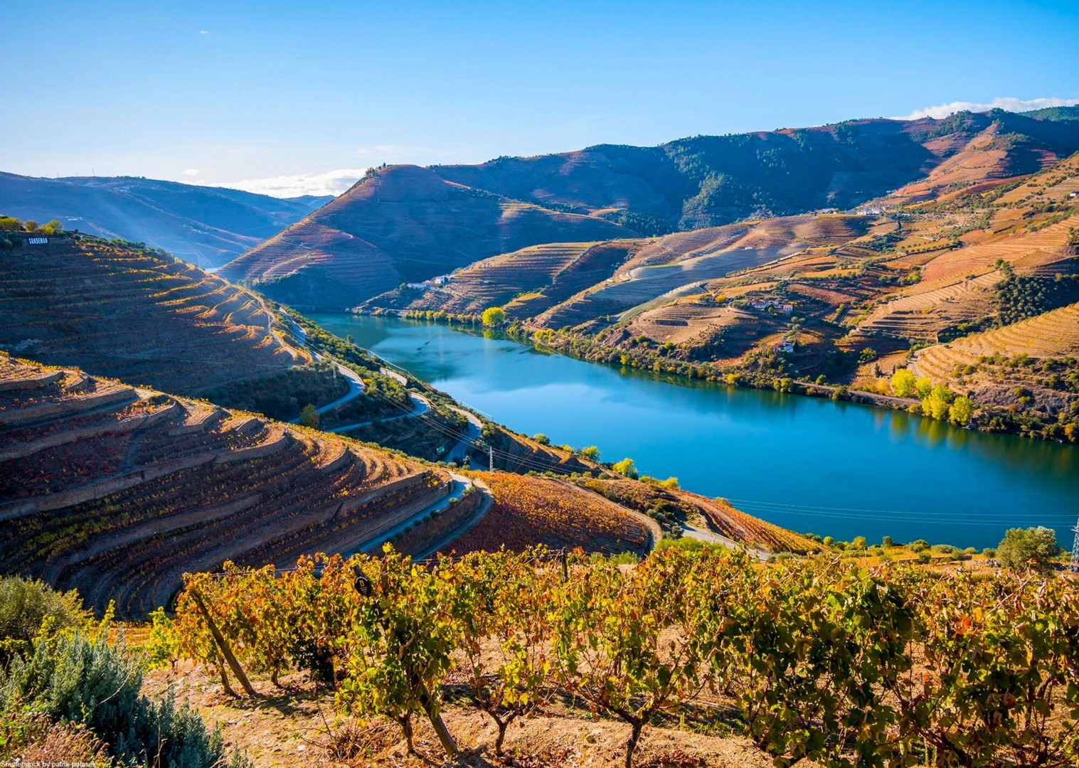 - Riding along the Douro river through immense vineyards surrounded by terraced slopes