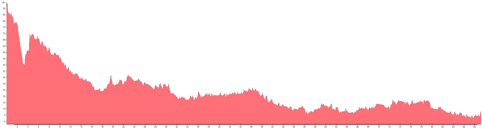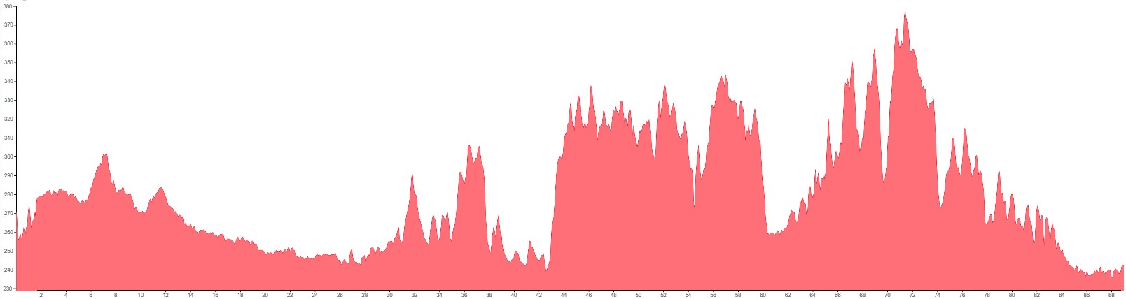 Using both graphs, alongside the grading and terrain information provided, should however give you a good idea of how flat, bumpy or steep the climbing on your particular tour is going to be.