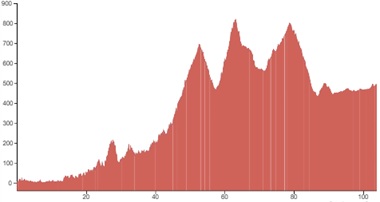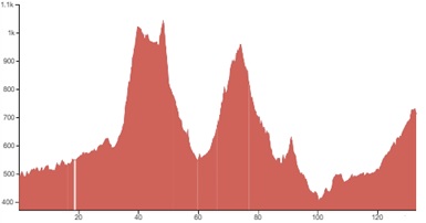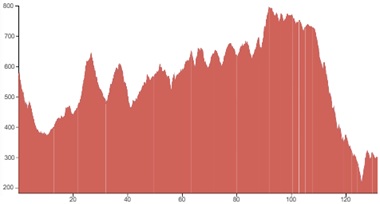 Using both graphs, alongside the grading and terrain information provided, should however give you a good idea of how flat, bumpy or steep the climbing on your particular tour is going to be.