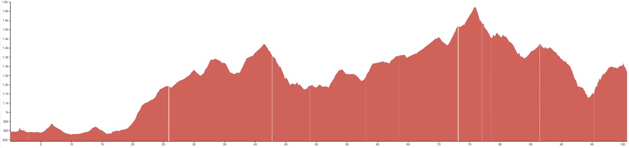 White vertical lines indicate unpaved sections or slightly rougher terrain.
