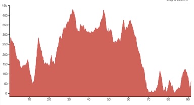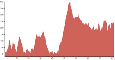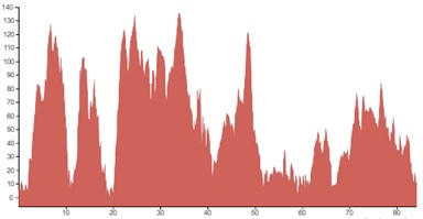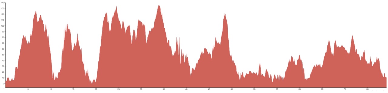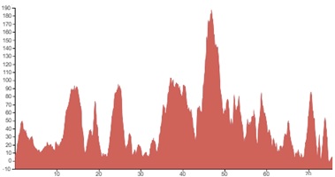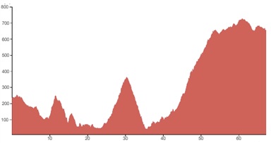 Using both graphs, alongside the grading and terrain information provided, should however give you a good idea of how flat, bumpy or steep the climbing on your particular tour is going to be.