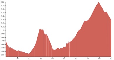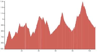 Using both graphs, alongside the grading and terrain information provided, should however give you a good idea of how flat, bumpy or steep the climbing on your particular tour is going to be.