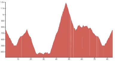 Using both graphs, alongside the grading and terrain information provided, should however give you a good idea of how flat, bumpy or steep the climbing on your particular tour is going to be.