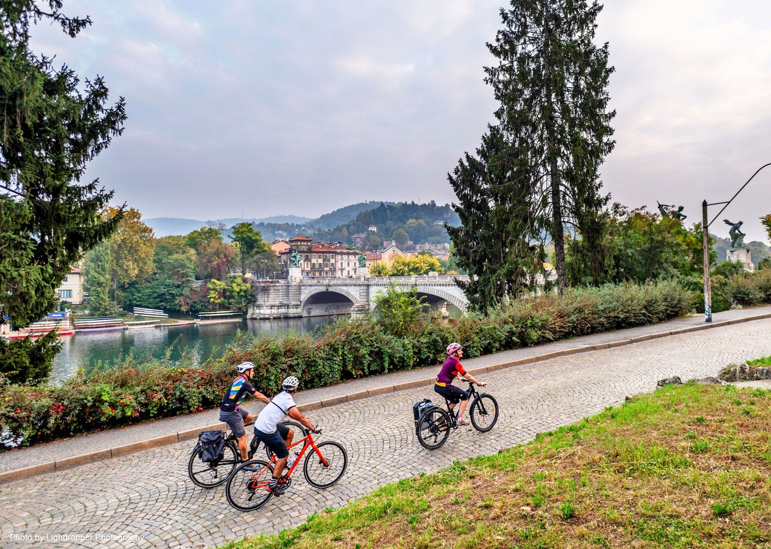 When you‘re ready to set off, you’ll leave Turin, cycling through the lively Parco del Valentino, a popular spot with locals and tourists alike, who you may see sprawled out along the banks of the Po River, taking in some rays. Soon you’ll enter the suburb of Moncalieri, home to one of the Royal Savoy Castle residences, listed as UNESCO World Heritage.