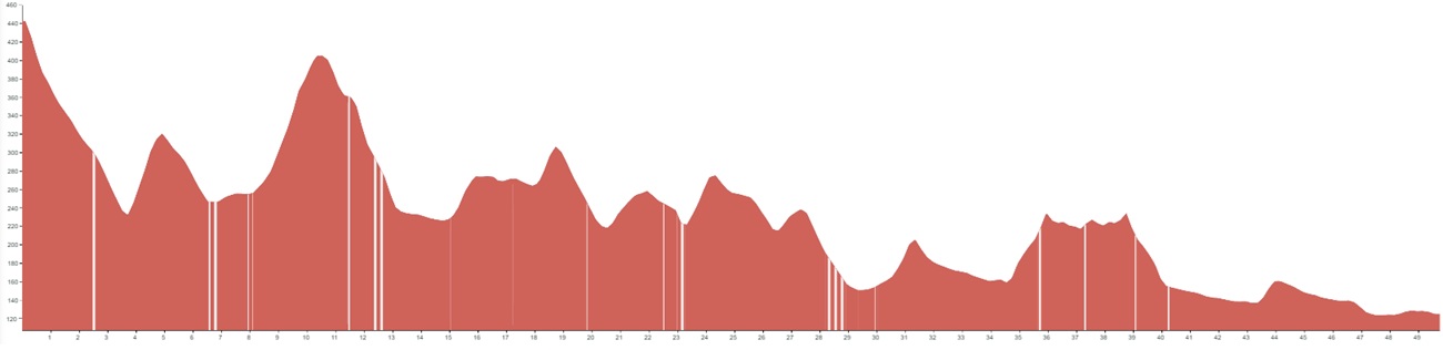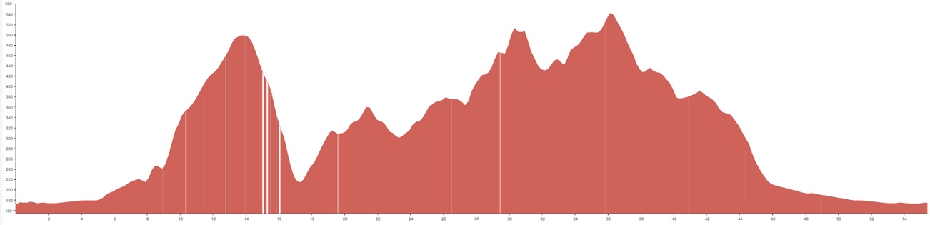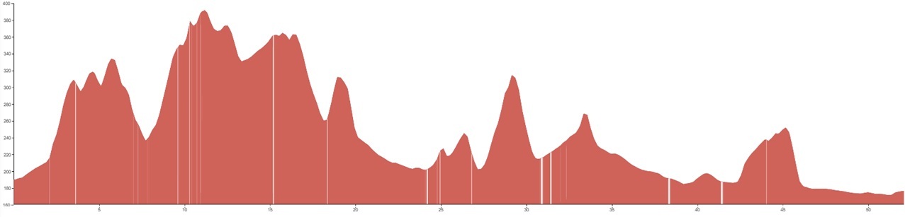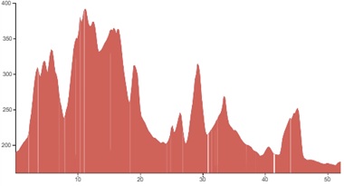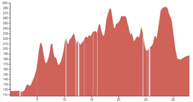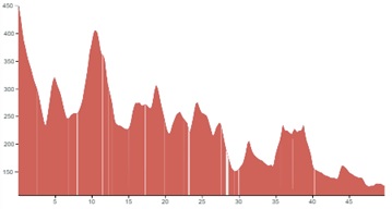 Using both graphs, alongside the grading and terrain information provided, should however give you a good idea of how flat, bumpy or steep the climbing on your particular tour is going to be.