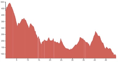 Using both graphs, alongside the grading and terrain information provided, should however give you a good idea of how flat, bumpy or steep the climbing on your particular tour is going to be.