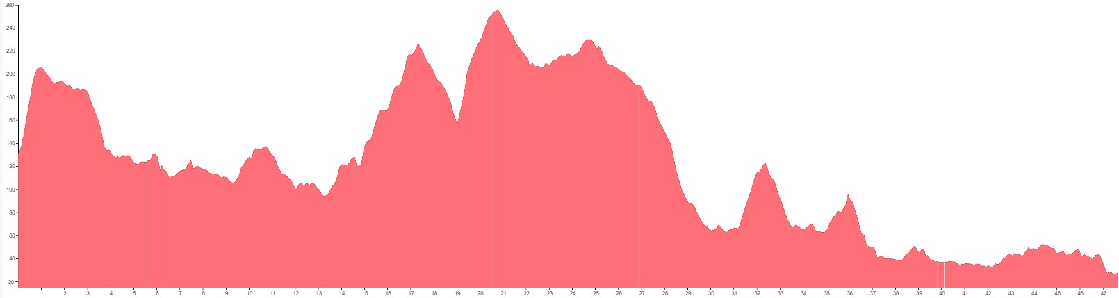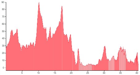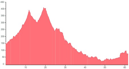 Using both graphs, alongside the grading and terrain information provided, should however give you a good idea of how flat, bumpy or steep the climbing on your particular tour is going to be.