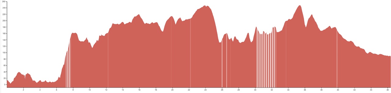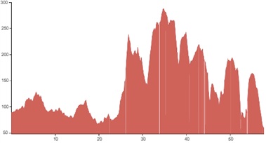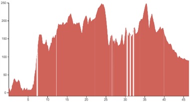 Using both graphs, alongside the grading and terrain information provided, should however give you a good idea of how flat, bumpy or steep the climbing on your particular tour is going to be.
