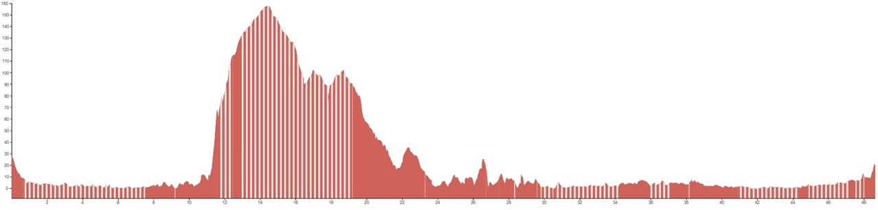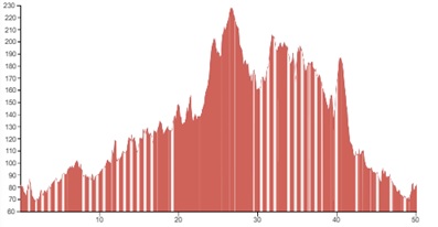 Using both graphs, alongside the grading and terrain information provided, should however give you a good idea of how flat, bumpy or steep the climbing on your particular tour is going to be.