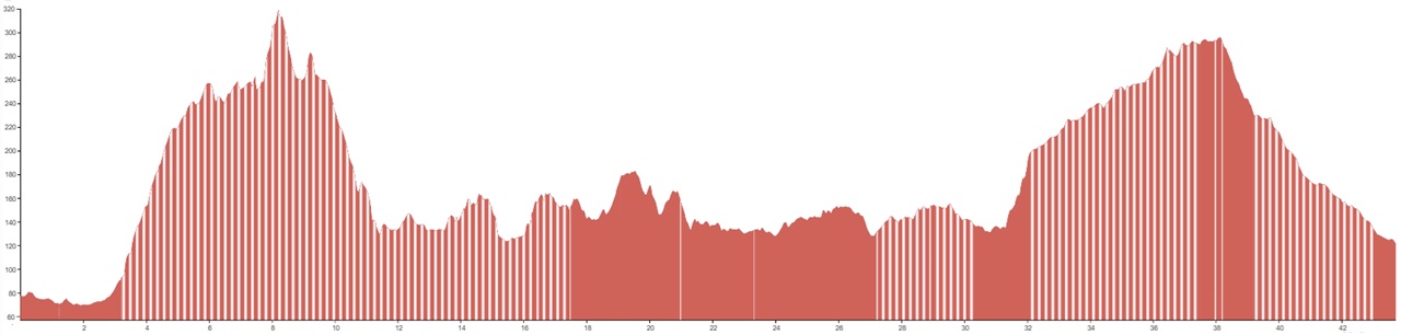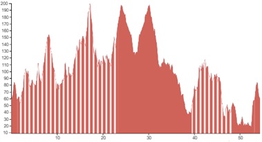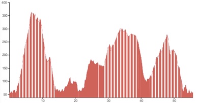 Using both graphs, alongside the grading and terrain information provided, should however give you a good idea of how flat, bumpy or steep the climbing on your particular tour is going to be.